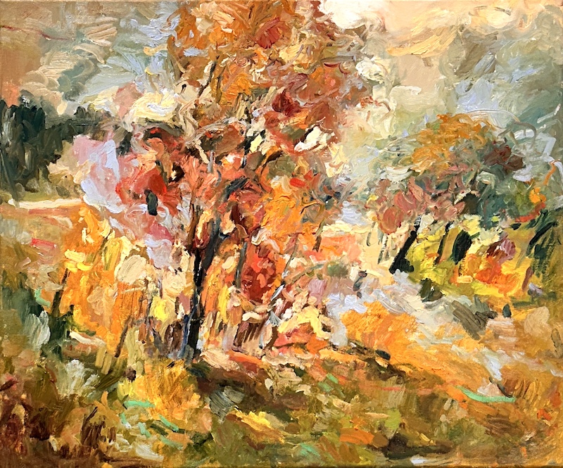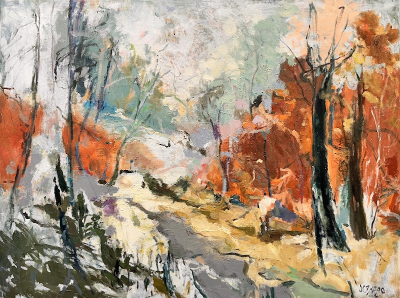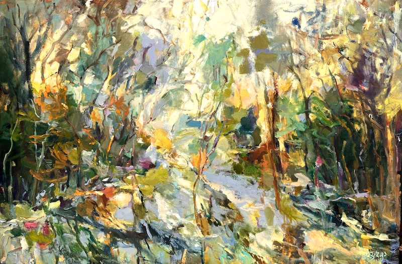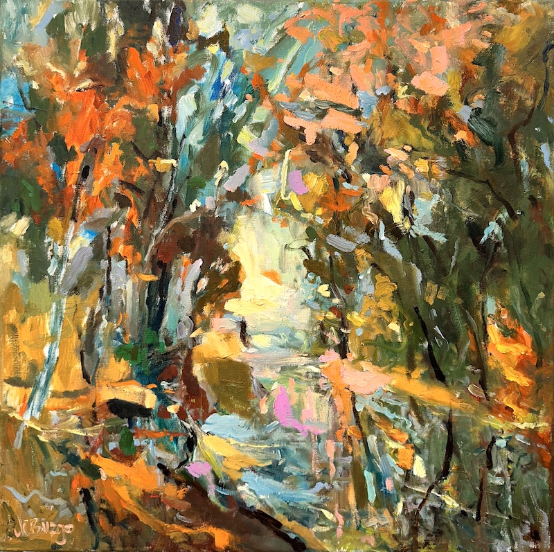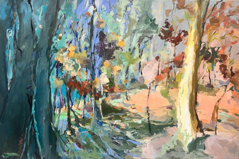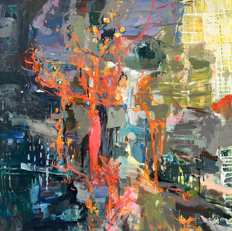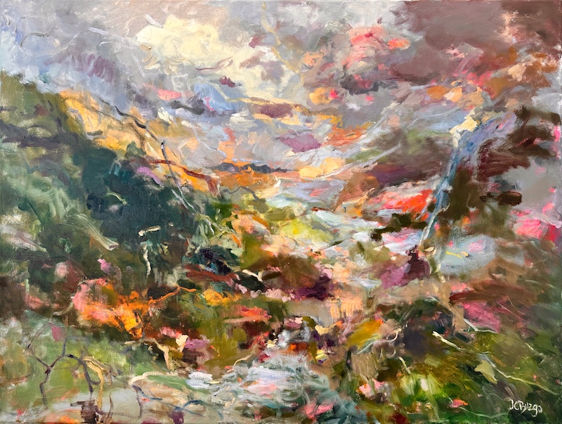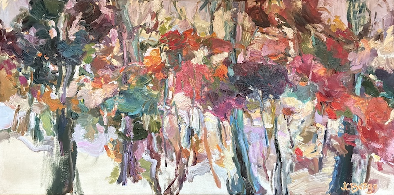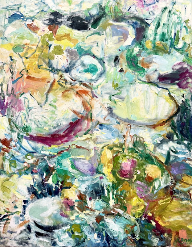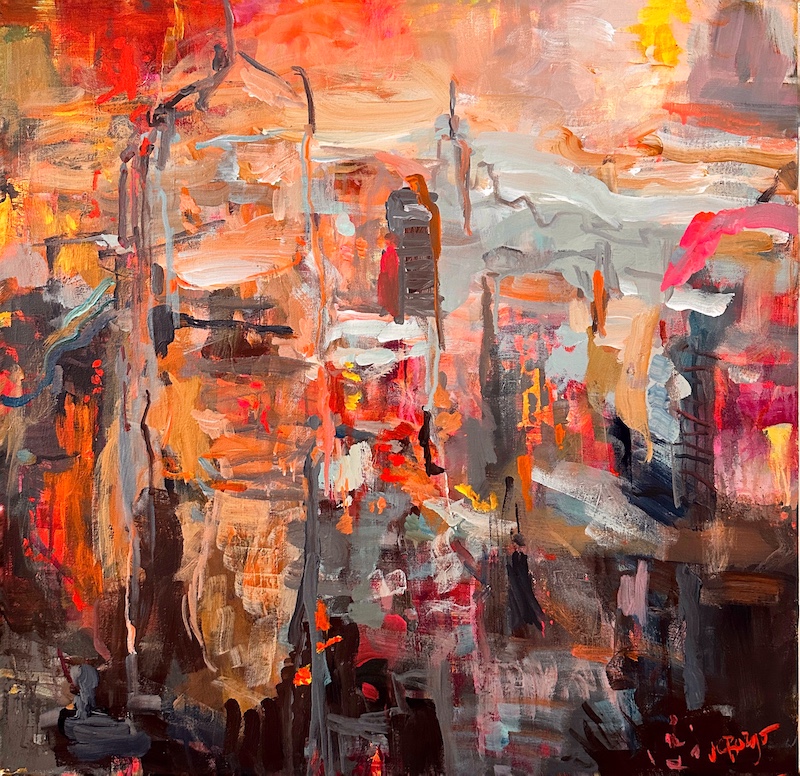 Her distinctive, energetic brushstrokes are juxtaposed with balanced compositions and invigorated with a mood-driven new color palette. “Exploring different color mixes, subjects and approaches keeps things fresh and exciting for me.”