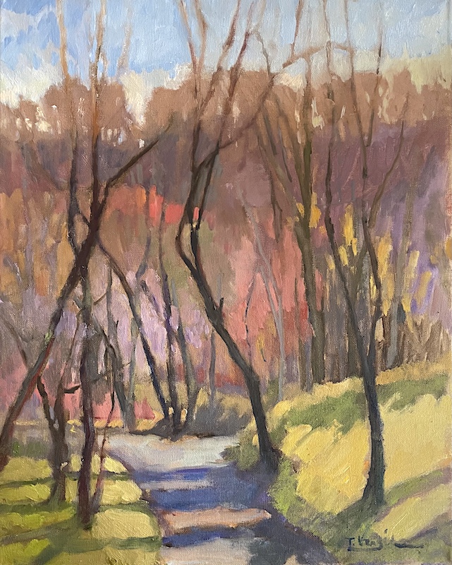 To create color harmony in her paintings, Trisha paints with a very limited palette and sculptural brushstrokes. As a Plein Air and studio painter, she prefers to paint Alla Prima, all at once and wet on wet.