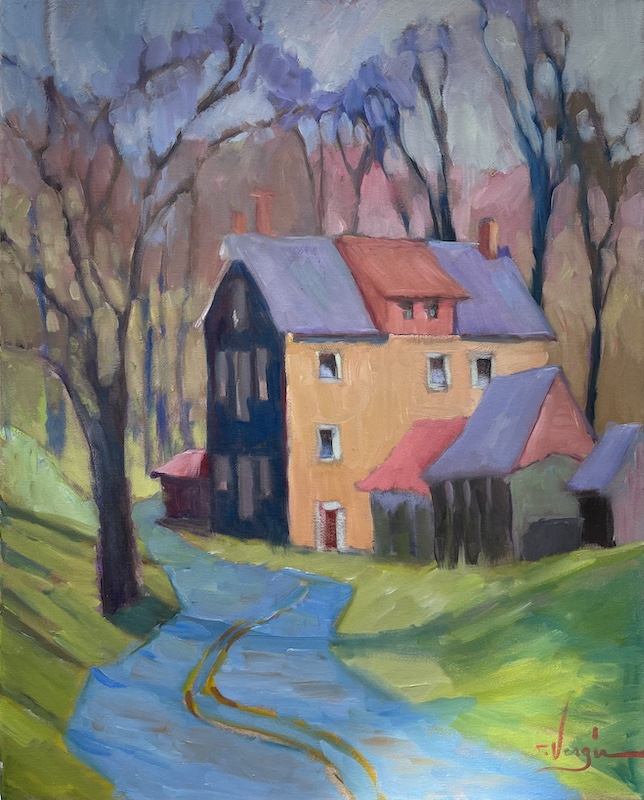Vergis studied her craftsmanship and painting skills at institutions like Ursinus College, Pennsylvania Academy of Fine Art, Moore College of Art, Philadephia College of Art, and in her apprenticeships with master painters, carvers and conservators. Her talent was awarded by prestigious organizations such as the 2017 Best of Show at Ellarslie, Trenton City Museum, Best of Show and First Place awards at the Tinicum Arts Festival as well as numerous inclusions at Phillips Mill Annual Art Exhibitions. In addition, she has exhibited in solo shows throughout her career, in her own galleries in Frenchtown and Lambertville as well as the Gratz Conservation Gallery with a special summer exhibition.